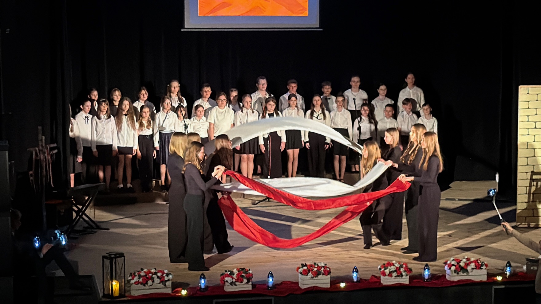 W Domu Kultury we Włoszczowie uczniowie przedstawili widowisko „Ocalić pamięć Katynia…” przygotowane pod kierunkiem nauczycieli: Anny Drążyk, Olgi Ślęzak, Anity Jastrzębskiej oraz Justyny Kaczor i Emilii Maciejczyk.