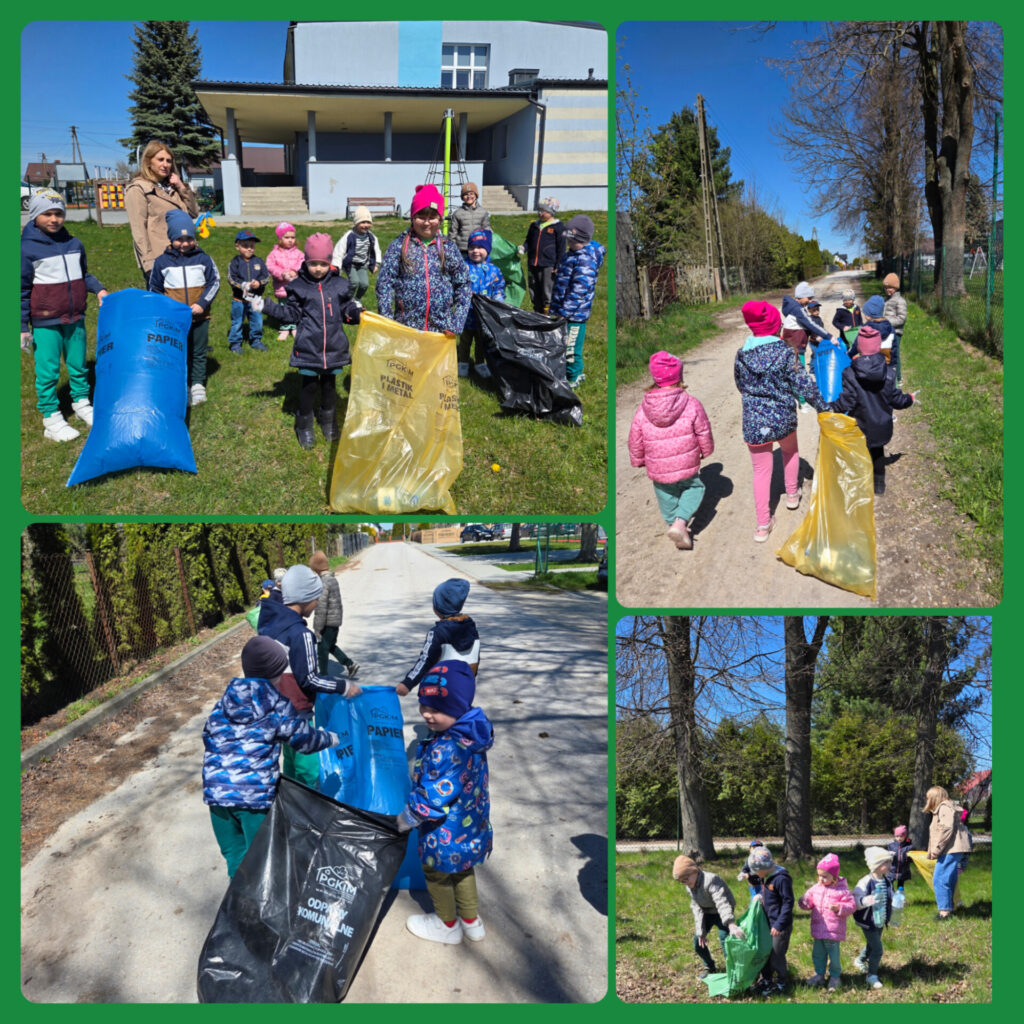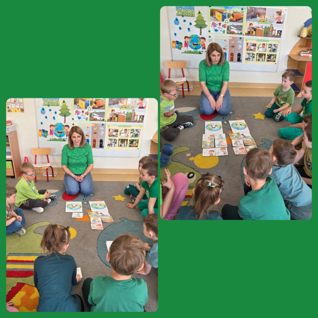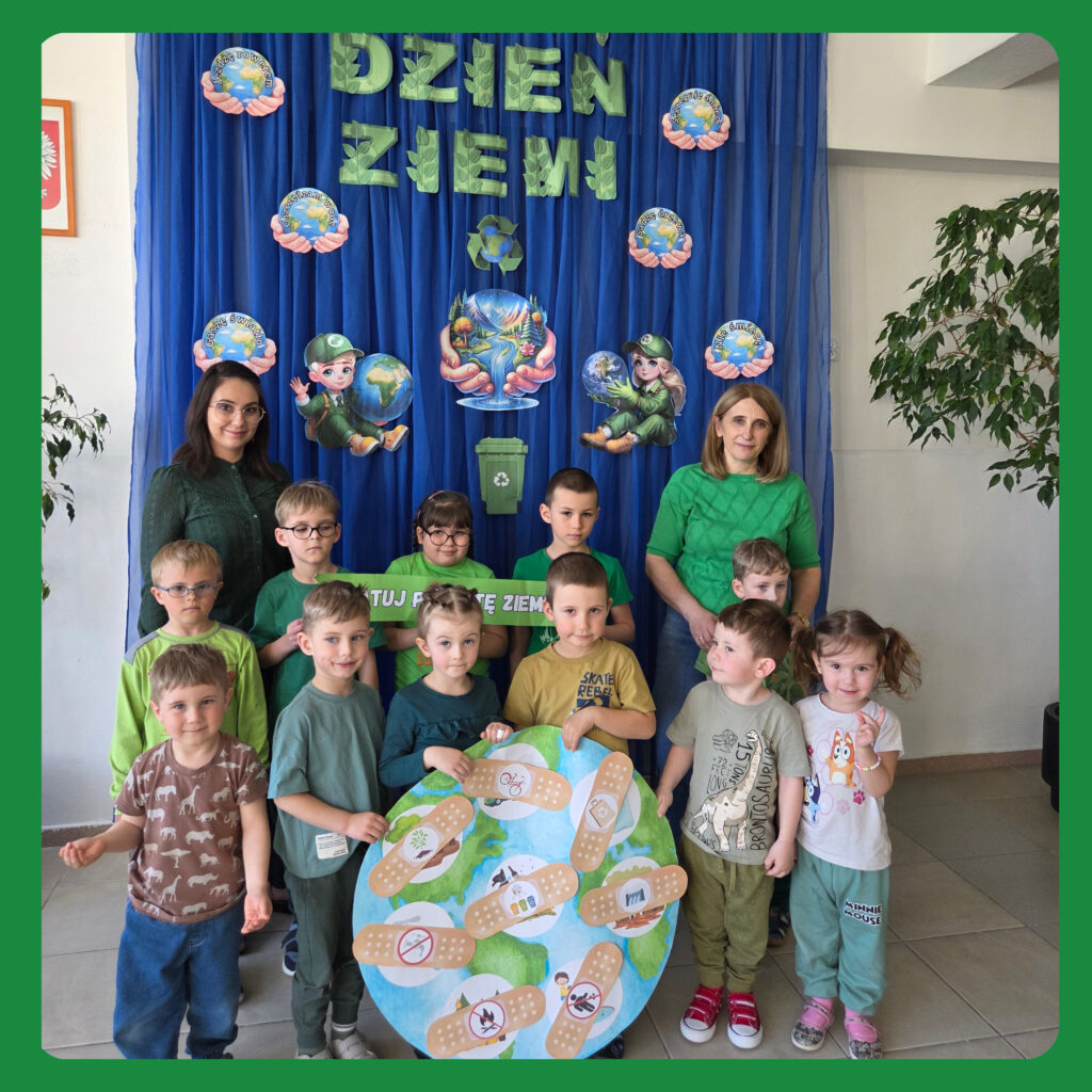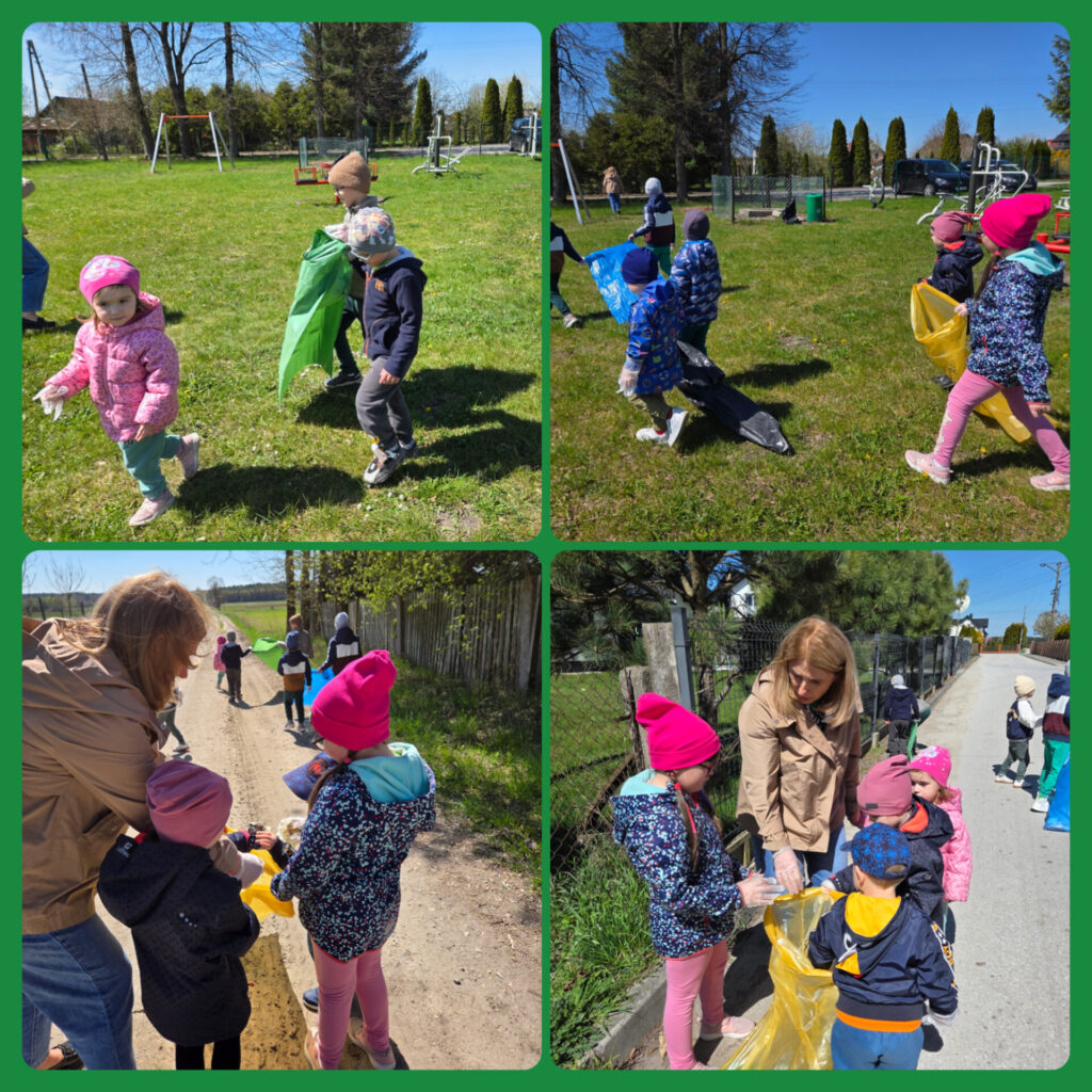 W ramach zajęć dzieci brały udział w grach, zabawach i konkursach; poznawały ciekawostki ekologiczne oraz wykonywały prace plastyczno- techniczne. Na zakończenie przedszkolaki z ogromnym zaangażowaniem przystąpiły do posprzątania terenu wokół przedszkola. Porządkując wyznaczony teren miały poczucie, że robią coś ważnego dla naszej planety. Dzień ten stał się okazją do uwrażliwienia dzieci na piękno i potrzeby Ziemi.
