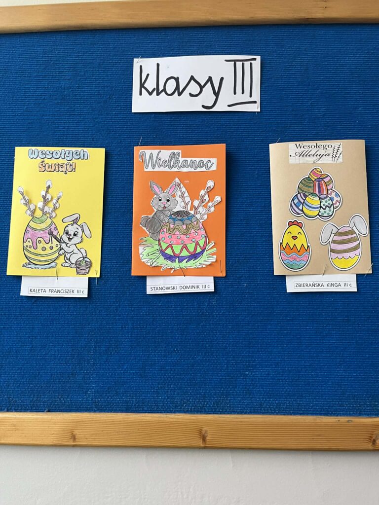 W ostatnich dniach w naszej szkole odbył się konkurs plastyczny pt. „Kartka wielkanocna” dla klas 1-3. Organizatorkami były panie Jolanta Ciosek, Katarzyna Lipniak oraz Marta Plebanek.