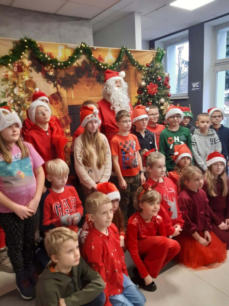 Dzieci obejrzały film oraz spotkały się z  Mikołajem.