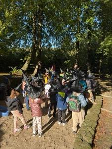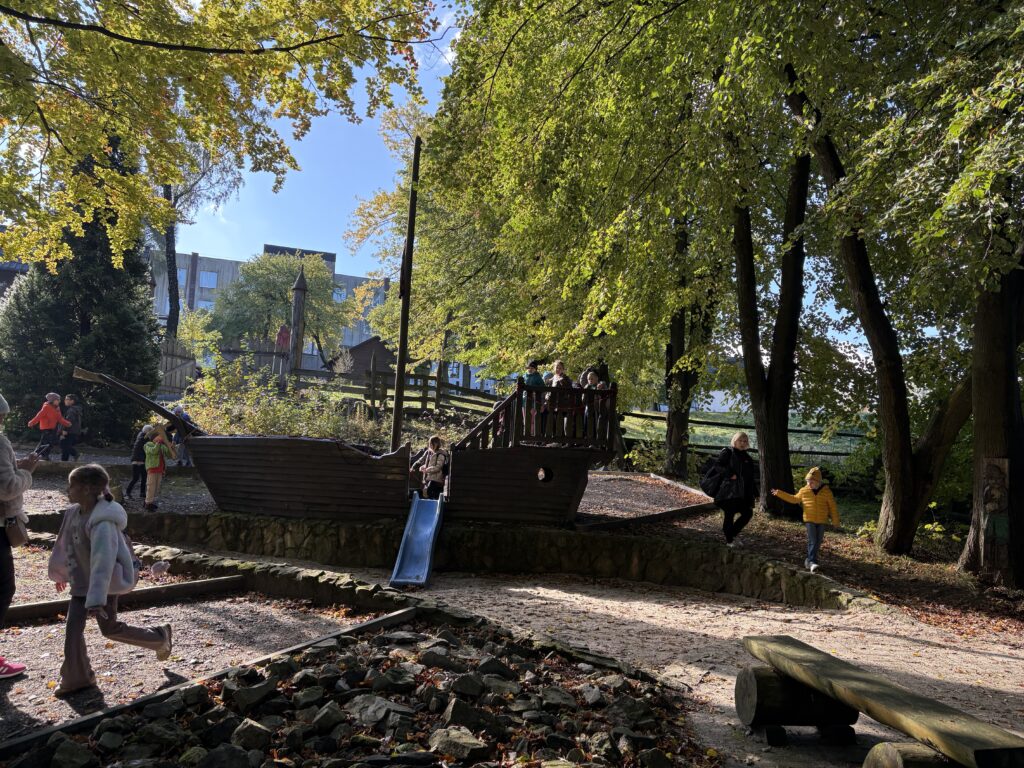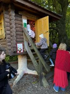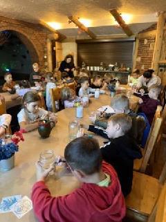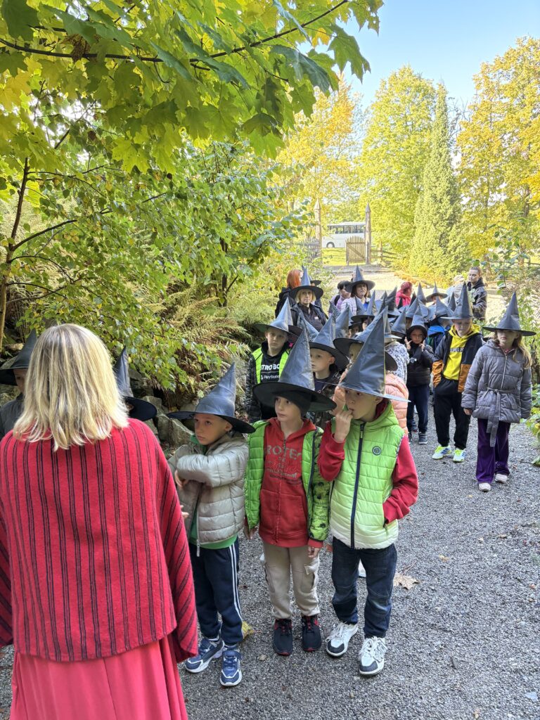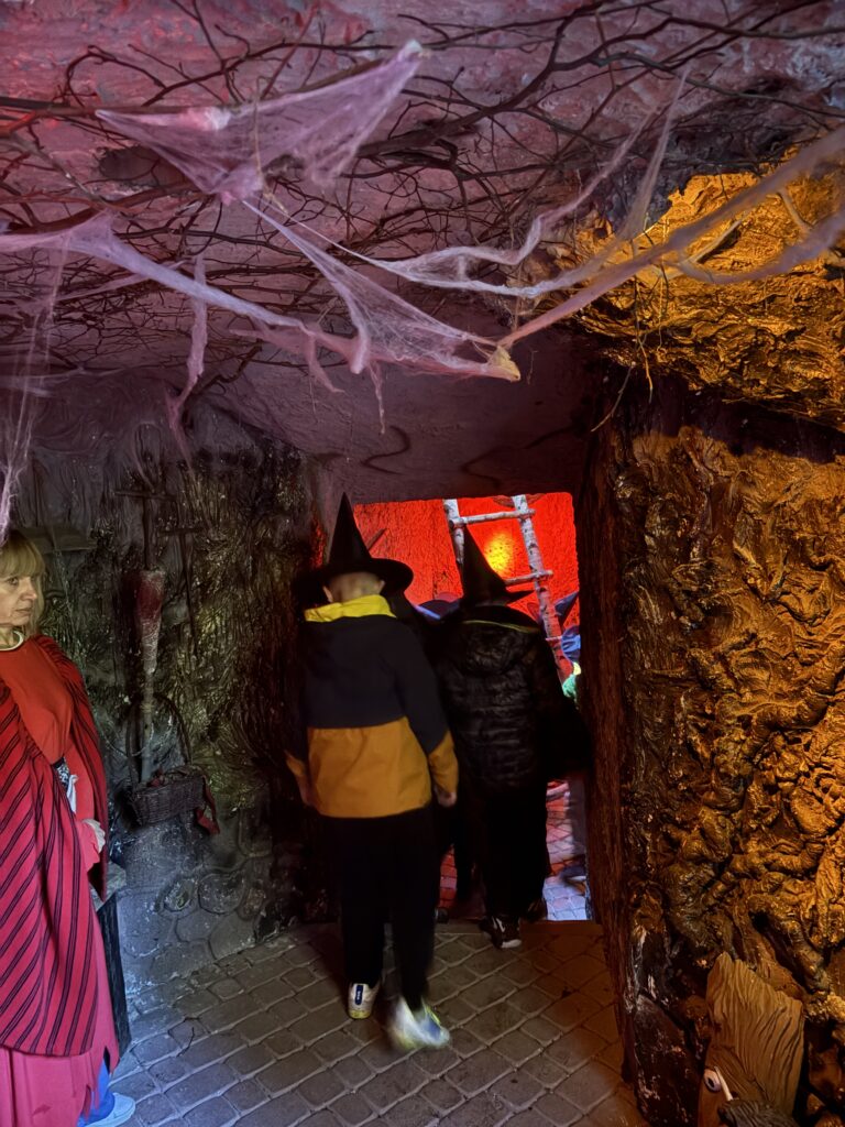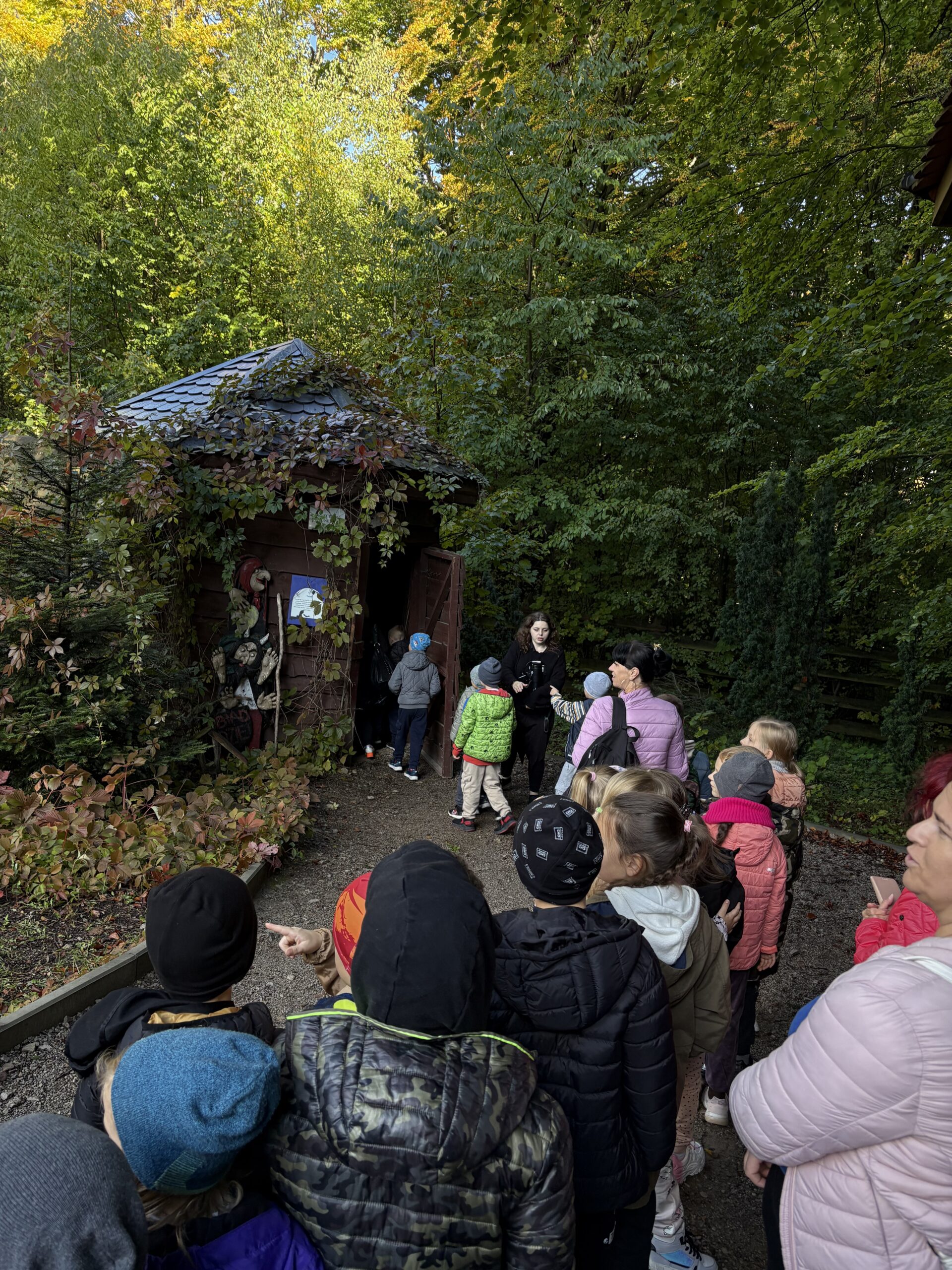 Dnia 8 października 2025r. uczniowie klasy  1b i 2b pod opieką wychowawczyń: p. Katarzyny Lipniak i p. Iwony Ciosek udali się do niezwykłego miejsca, pełnego świętokrzyskich legend. Babyjagowo to miejsce, gdzie można poznać osobiście Babę Jagę i wejść do jej chatki na kurzej stópce. Tam spotkali zbója Madeja, który w odtworzonej zgodnie z legendami jaskini pilnuje swego skarbu.  Odwiedzili również chatkę Jasia i Małgosi, a także  straszny tunel. Skorzystali z placu zabaw oraz wstąpili na wielką łódź Wikingów. Następnie po smacznym poczęstunku był czas na warsztaty plastyczne – malowania na szkle. Każdy uczeń ozdobił samodzielnie słoik i buteleczkę, którą mógł zabrać do domu.