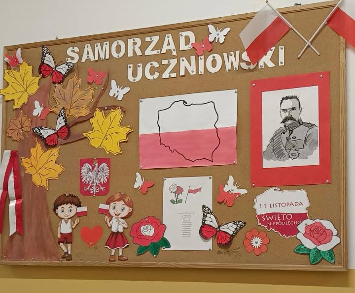 Aby uczcić tą ważną dla Polaków datę Samorząd Uczniowski pod kierunkiem p. Patrycji Hylaszek przygotował gazetkę szkolną o tematyce niepodległościowej. Przedstawiciele SU zapalili również znicze pod tablicą patrona Szkoły Józefa Piłsudskiego oraz pod Pomnikiem Niepodległości.