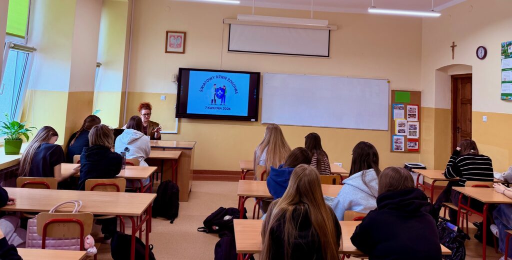 Dnia 31 marca 2026r. w ramach Szkolnego Tygodnia Zdrowia w naszej szkole odbyło się wyjątkowe panią Moniką Gieroń – specjalistką dermatologii i wenerologii Kliniki Dermatologii Wojewódzkiego Szpitala Zespolonego w Kielcach oraz wykładowcą wydziału lekarskiego Uniwersytetu Jana Kochanowskiego w Kielcach.