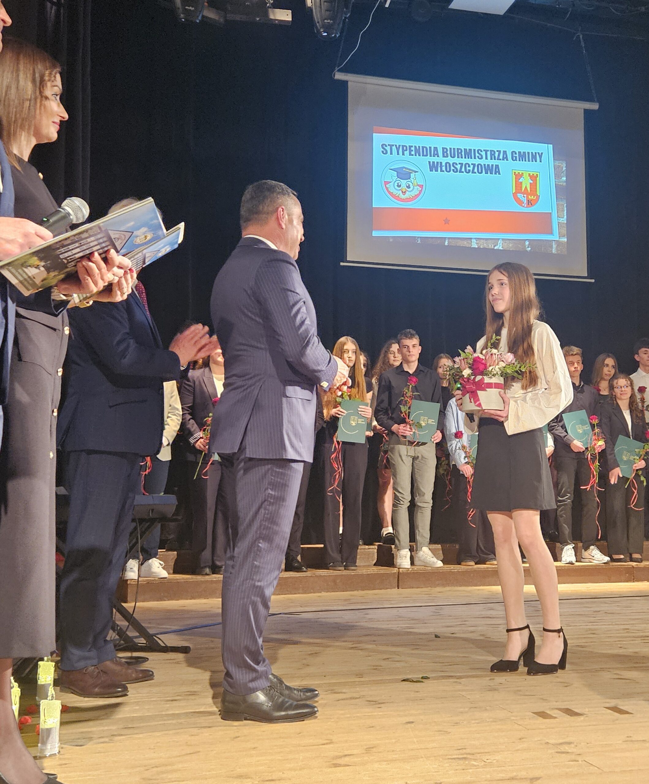 13 kwietnia 2026r. podczas uroczystych obchodów 86. rocznicy tragedii katyńskiej i 16. rocznicy katastrofy smoleńskiej Burmistrz Gminy Włoszczowa – p. Grzegorz Dziubek wręczył stypendia dla najzdolniejszych uczniów klas 7-8 ze szkół podstawowych z terenu naszej gminy.